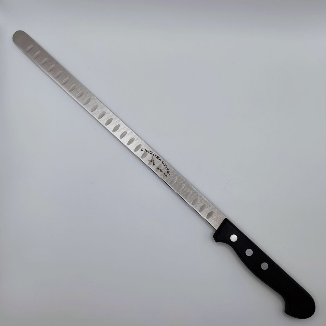 El cuchillo jamonero alveolado de la casa Cuchillería Álvarez, es una herramienta de alta calidad.