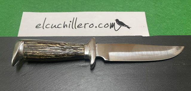 Antiguo Cuchillo De Monte, Muela Imitación a Cuerno , Años 70-80, Funda Polipiel, Inox