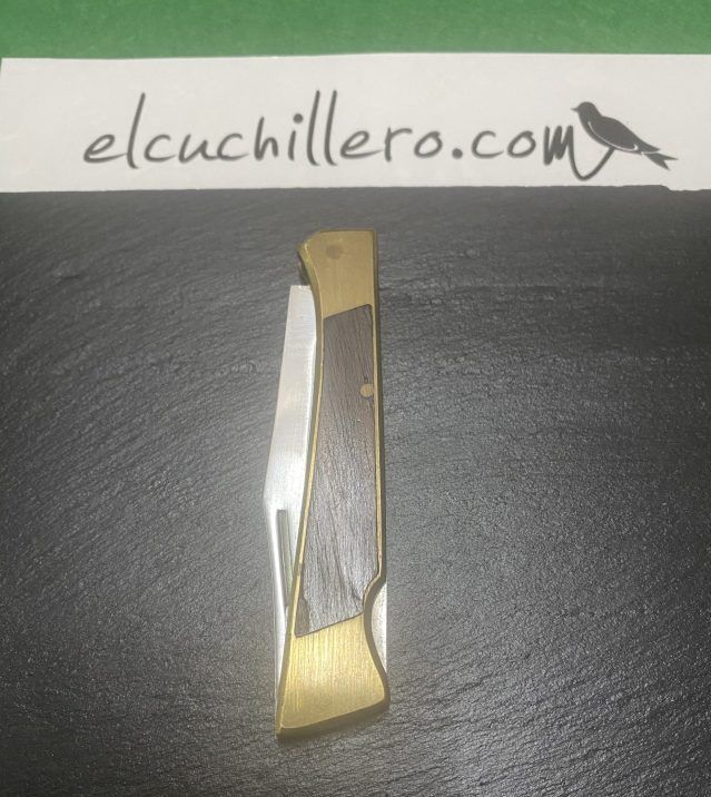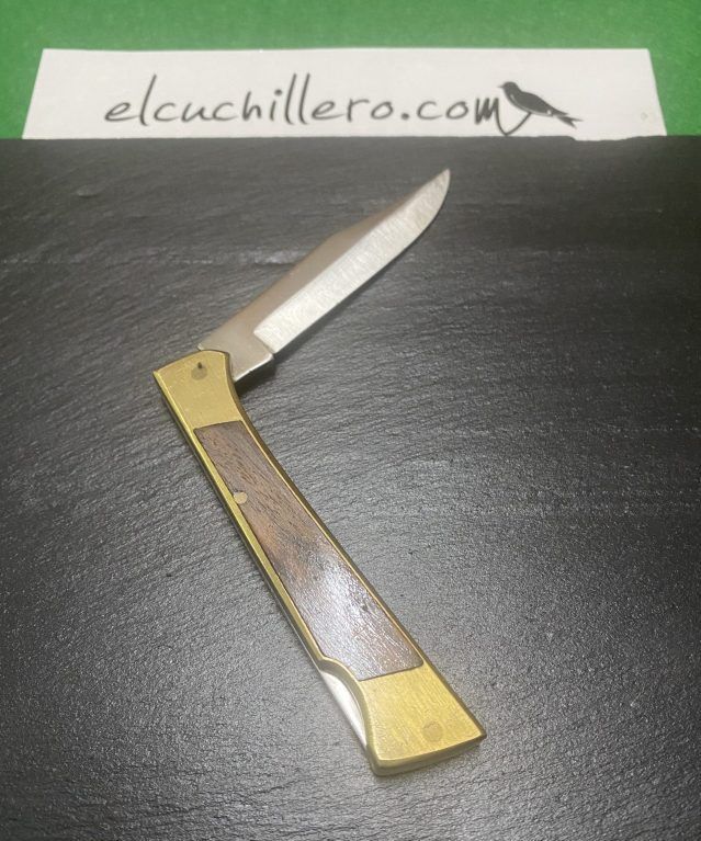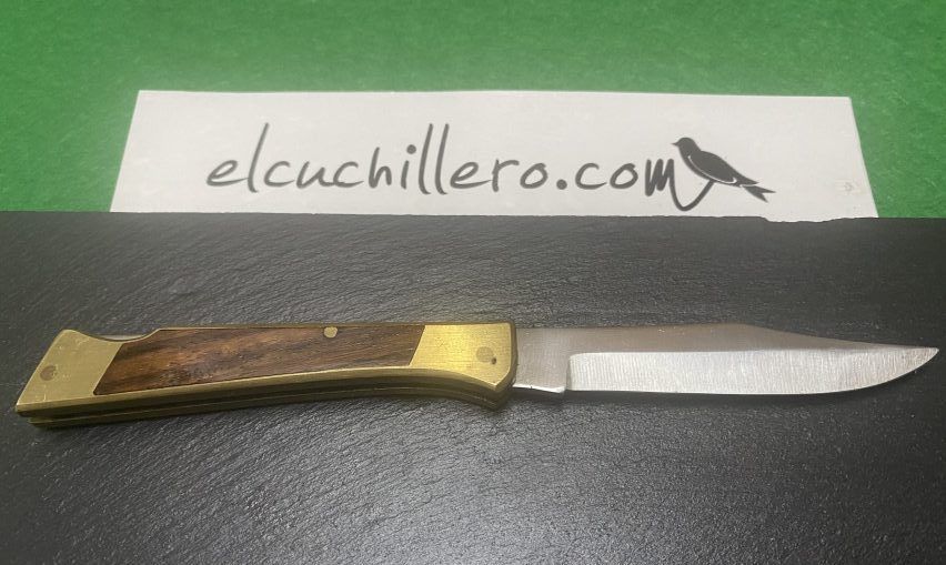 DESCRIPCIÓN: Navaja Albacete Latón y Madera Hoja acero inoxidable, sistema de cierre seguro de presión LH 9 cm LT 18,5 cm