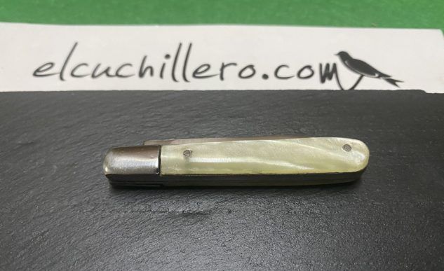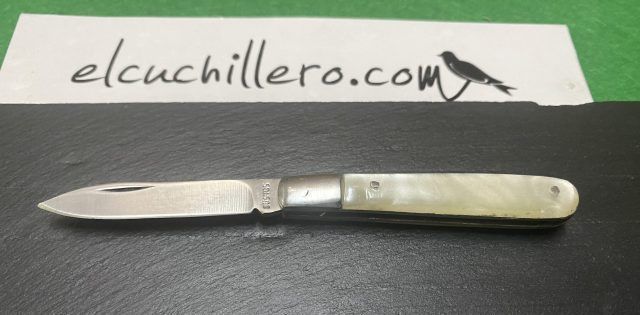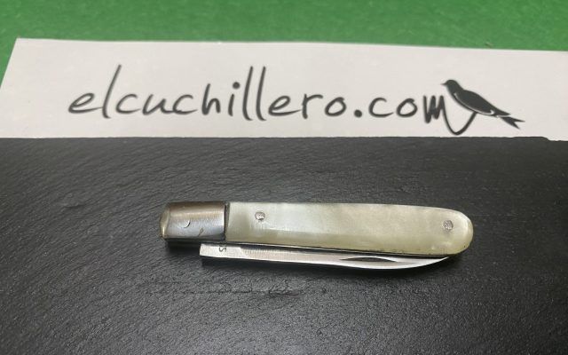 Hoja acero carbono, cachas nácar y acero. Cierre de pistón.