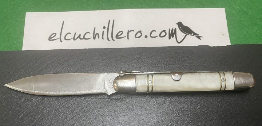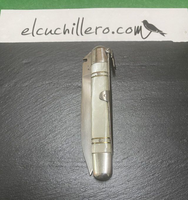 Hoja acero inoxidable,cachas nácar y cintillos. Sistema de cierre Palanquilla.