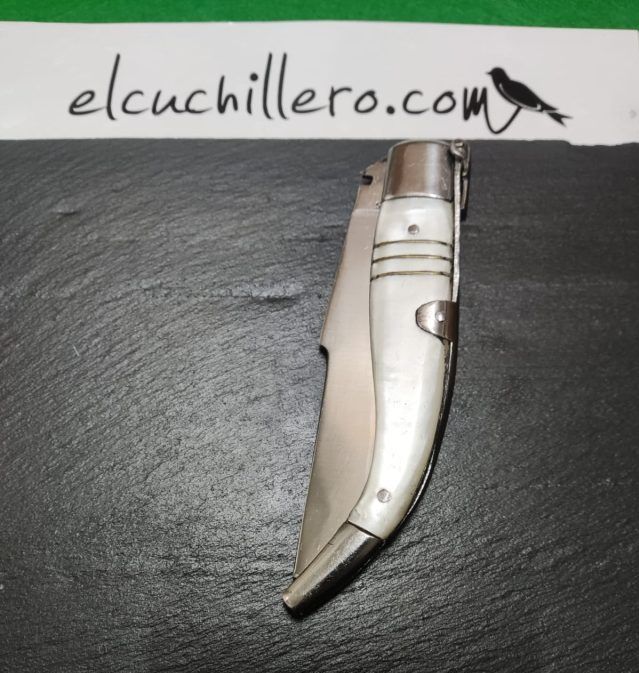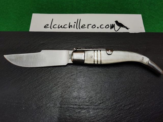 Hoja acero carbono, cachas nácar. Sistema de cierre Palanquilla.