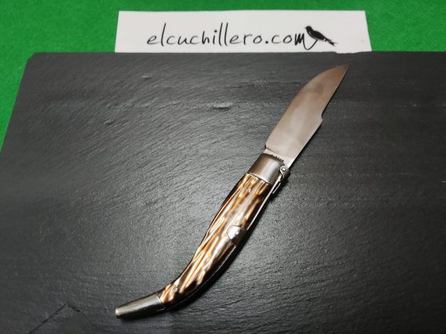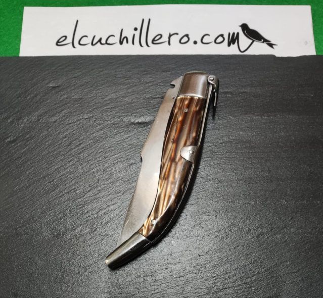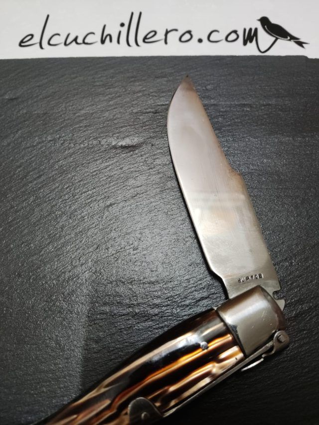 Hoja acero carbono, cachas nacarina. Sistema de cierre Palanquilla.