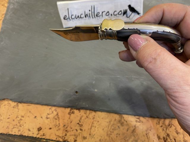 Navaja Expósito Capaora, asta de toro y acero Mova acanalado, muelle palanquilla