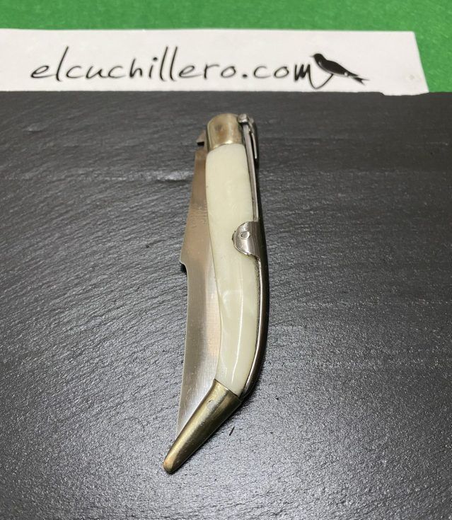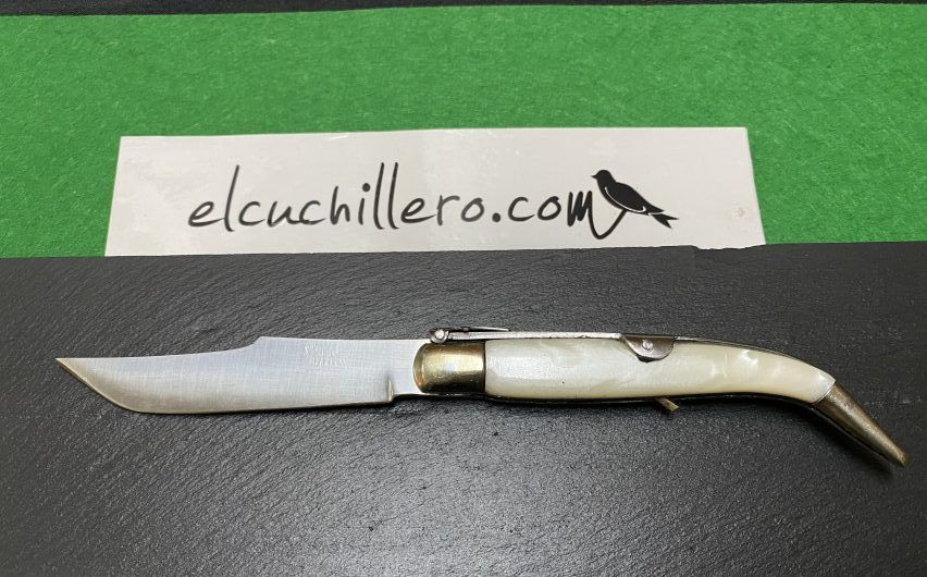 Hoja acero inoxidable ( hoja estrecha), cachas nácar. Sistema de cierre Palanquilla