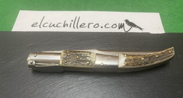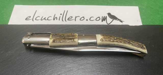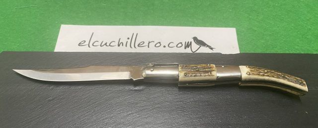 Hoja acero inoxidable, empuñadura cuerno de ciervo. Sistema cierre Palanquilla.