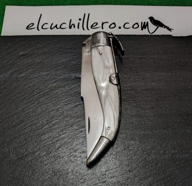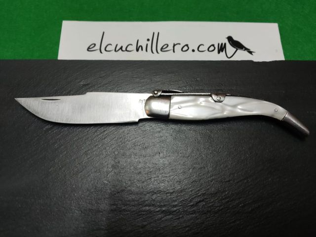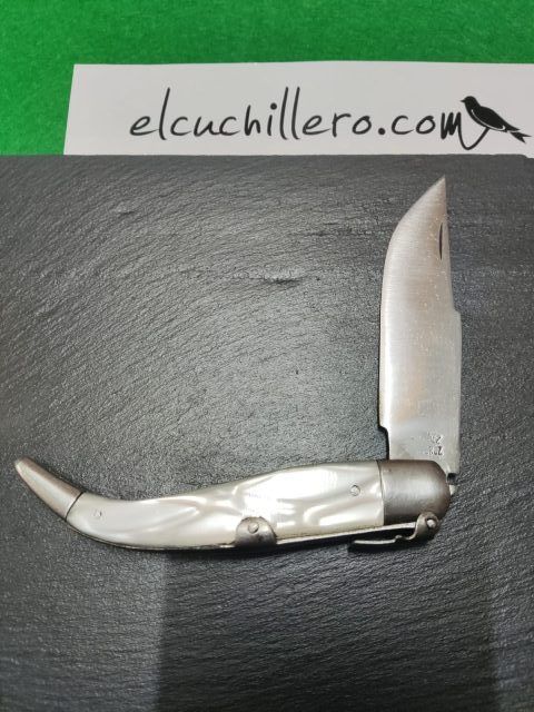 Hoja acero carbono, cachas nacarina. Sistema de cierre Palanquilla.