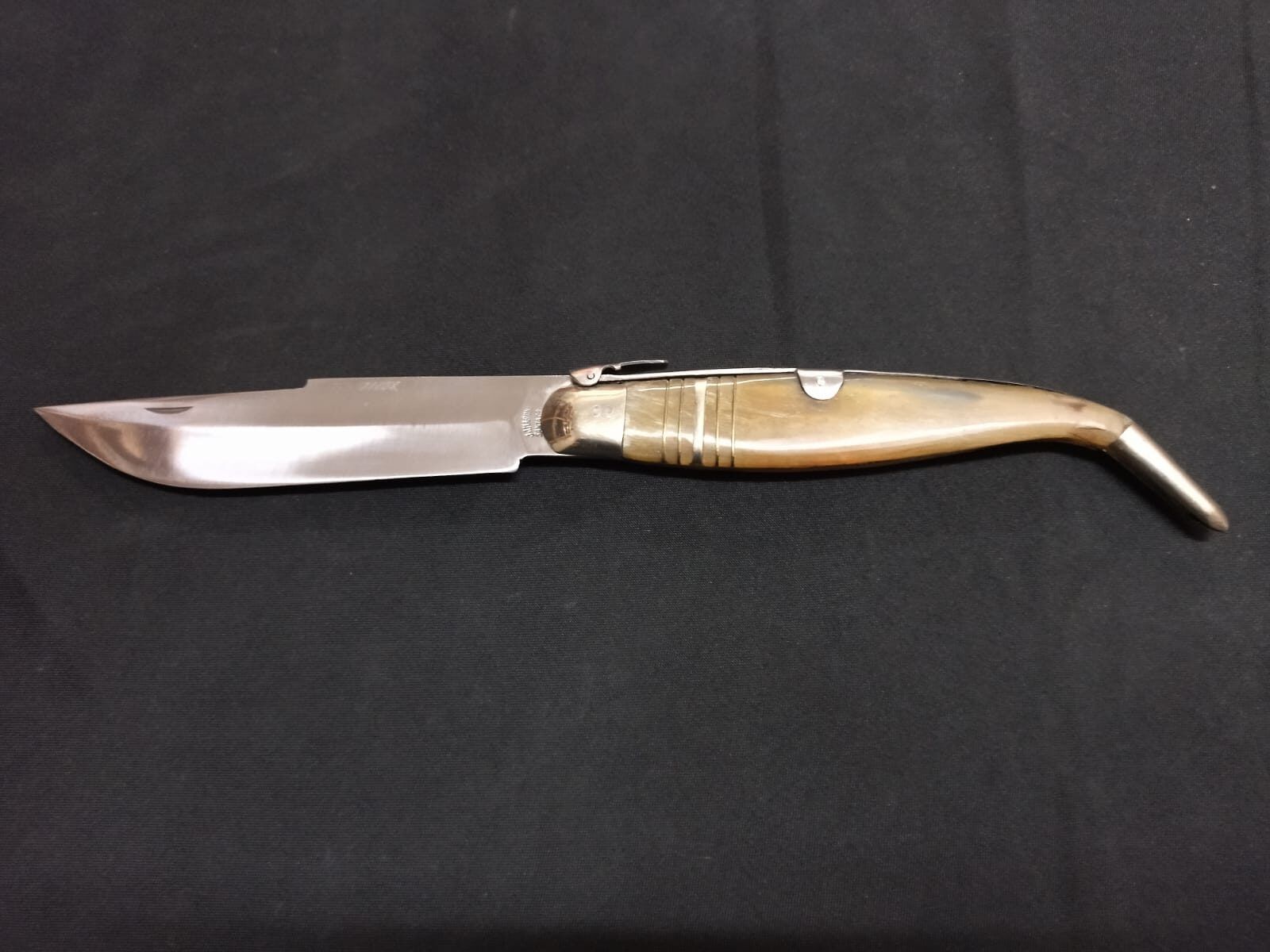 Hoja acero inoxidable, cachas asta de toro. Sistema de cierre palanquilla.