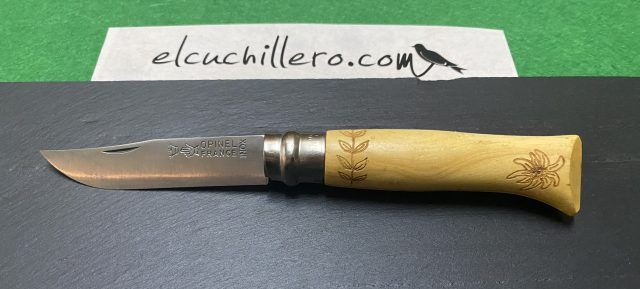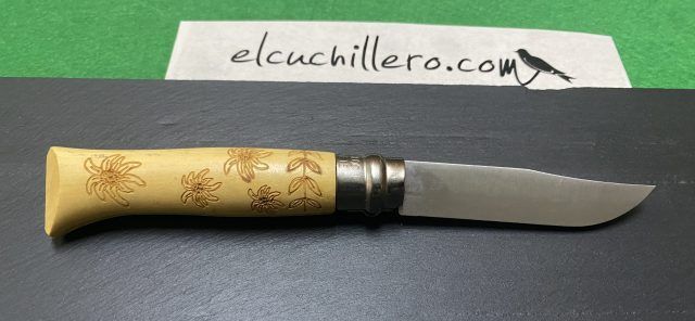 Navaja Opinel Nº8 Serie Leyenda de la Montaña . Mango madera de Boj y acero Sandvik 12c27 inoxidable.