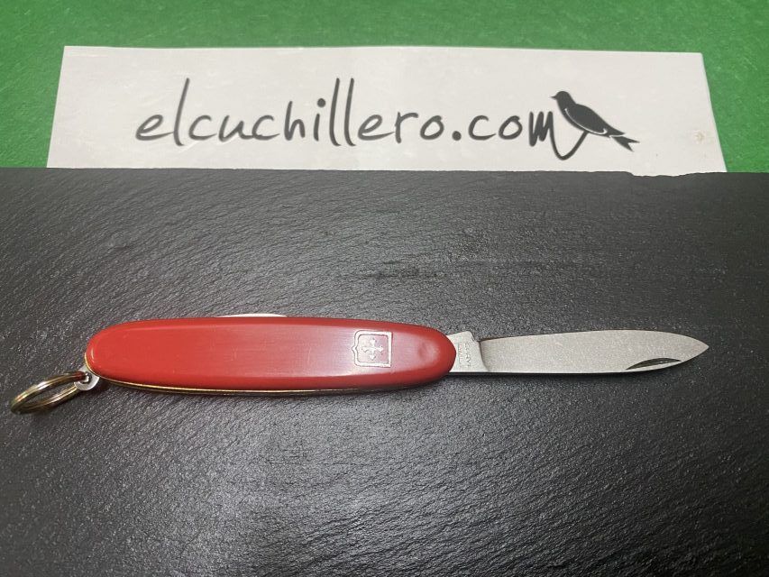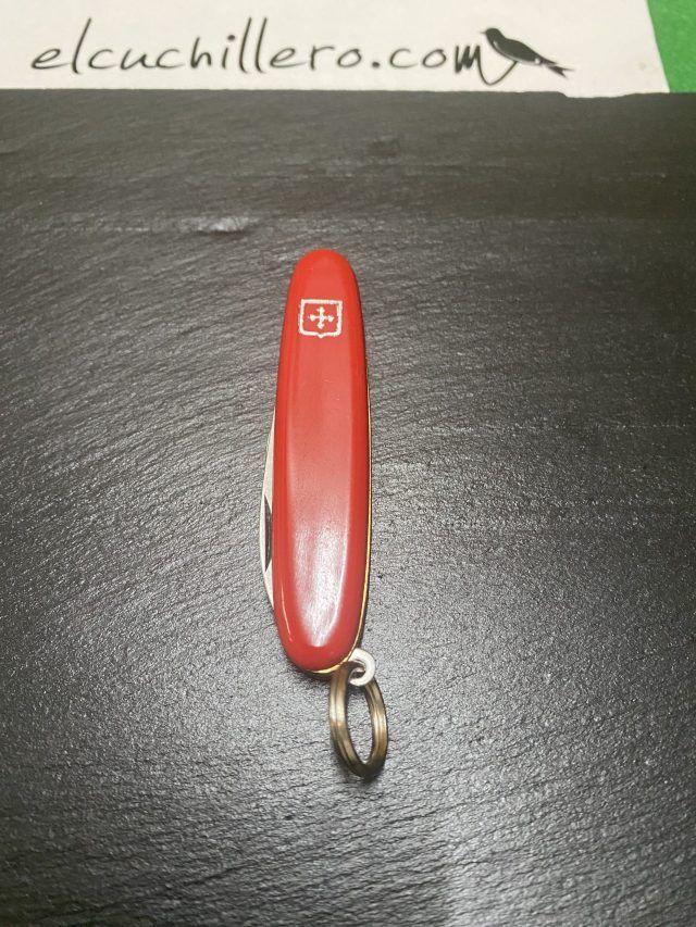 Hojas acero inoxidable, cachas plástico y argolla.